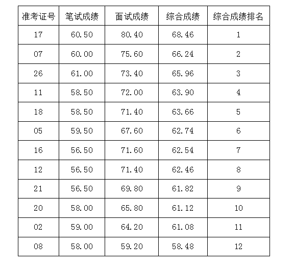 綜合成績(jī)排名前四的應(yīng)聘人員將進(jìn)入考察程序。