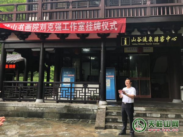 近日,天柱山書畫院“劉克強工作室”掛牌儀式在山谷流泉文化園隆重舉行。此次活動由天柱山管委會、潛山市文聯(lián)聯(lián)合舉辦,天柱山書畫院、天柱山畫家村美術(shù)館具體承辦。天柱山管委會、潛山市文聯(lián)、天柱山鎮(zhèn)、天柱山旅游公司等相關(guān)單位負責(zé)人;國內(nèi)知名畫家劉克強、湯敏杰、余國友;國家注冊拍賣師李樹友以及來自全國各地的企業(yè)家,本地書畫愛好者,圈內(nèi)好友等幾十人參加了揭牌儀式。