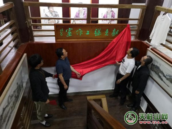 最后,在全體嘉賓的共同見證下,市委常委、天柱山管委會副主任涂高生、潛山市文聯(lián)主席韓久安、著名畫家劉克強、天柱山書畫院執(zhí)行院長何承熙共同為“劉克強工作室”揭牌。