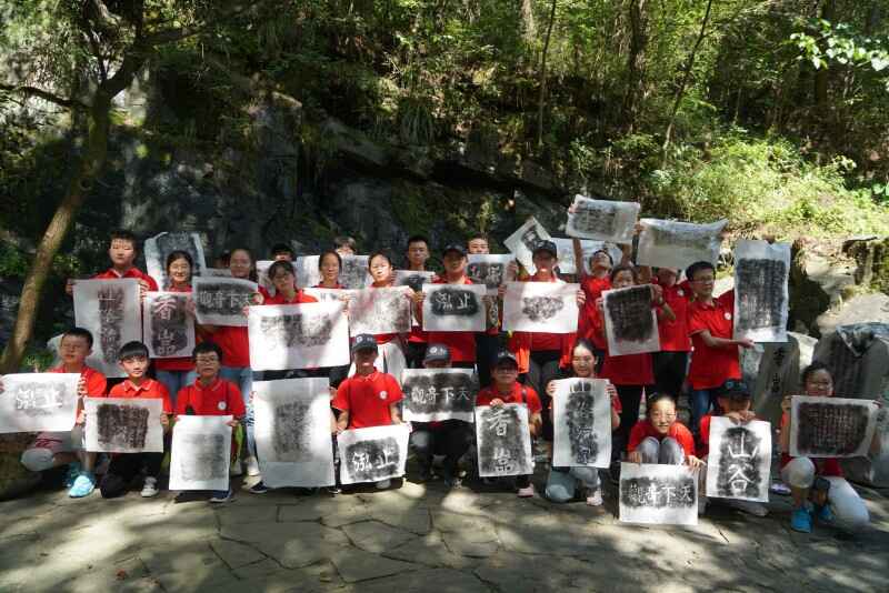 “窮幽深而不盡,坐石上以忘歸”是北宋文學(xué)家王安石用以形容山谷流泉美景的經(jīng)典詩句。在這里,營(yíng)員們不僅體驗(yàn)到青山綠水木橋溪流構(gòu)成的靜謐之美,還感受到了石刻上的文化與藝術(shù):在長(zhǎng)達(dá)1500余米的山谷兩岸的石壁上,自唐代至今留存的名家文人石刻將近400方,琳瑯滿目,美不勝收。走在歷代書法藝術(shù)長(zhǎng)廊之中,仿佛再現(xiàn)了古代文人墨客徜徉于此,物我兩忘,題辭勒石的場(chǎng)景……營(yíng)員們還合作體驗(yàn)了拓片的制作,在鍛煉動(dòng)手能力的同時(shí)親近了中國(guó)傳統(tǒng)文化,感受了中國(guó)書法魅力。