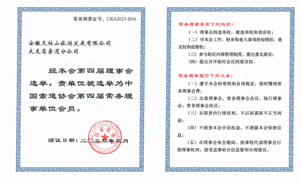 喜報(bào)!天柱山大龍窩索道當(dāng)選中國(guó)索道協(xié)會(huì)常務(wù)理事單位