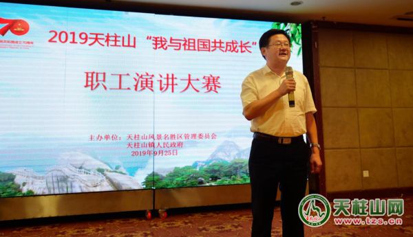 為獻(xiàn)禮中華人民共和國(guó)成立70周年,9月25日下午,由天柱山管委會(huì)和天柱山鎮(zhèn)政府共同主辦的2019天柱山“我和祖國(guó)共成長(zhǎng)”職工演講大賽在七仙女大酒店成功舉辦。潛山市委常委、天柱山管委會(huì)副主任涂高生到場(chǎng)指導(dǎo)并講話,風(fēng)景區(qū)班子成員,天柱山鎮(zhèn)主要領(lǐng)導(dǎo),管委會(huì)、天柱山鎮(zhèn)、天柱山林場(chǎng)、執(zhí)法大隊(duì)、旅游公司機(jī)關(guān)、基層各單位非當(dāng)班職工共150人觀看了本次比賽。