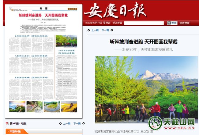 金秋的風(fēng),滿載著收獲的氣息,親撫著天柱山的滿目錦繡。從養(yǎng)在深閨,到走出國(guó)門(mén),從步履蹣跚到超邁前行,天柱山以全新的面貌和累累碩果向新中國(guó)成立70周年獻(xiàn)禮!