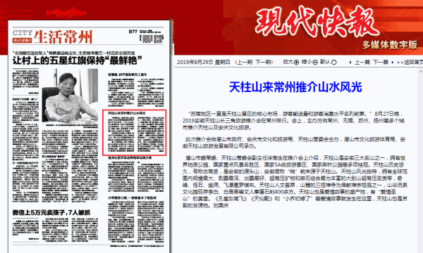 現(xiàn)代快報(bào):天柱山來(lái)常州推介山水風(fēng)光