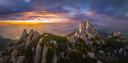 特色: 晨曦初現(xiàn)之際,安徽潛山天柱山從混沌中緩緩蘇醒,紫金色的光線穿透天柱山的重重群峰,將歷經(jīng)億萬年的巖石染成琥珀色。崖壁上的每一道裂紋,都流淌著如熔金般的光澤。那些積聚了一夜的云團,在晨光中漸漸舒展成金色的綢緞,從青龍背的脊線漫溢而下,沿著天蛙峰的弧線鋪向遠方。陽光穿過云層的剎那,云海里便躍動起無數(shù)光點,成為此時最靈動的筆觸,勾勒出一幅壯麗的畫卷。